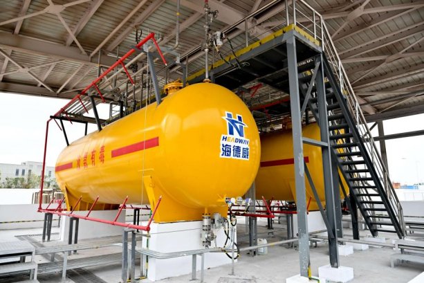 據悉,海德威此次作為項目總包方,以“交鑰匙”工程模式承擔了氨燃料供給系統的整體設計、核心裝備集成及工程化交付工作,構建了覆蓋燃料儲運、調節控制、安全管理及運行支持的完整系統解決方案,提供涵蓋氨燃料儲罐、氨燃料供給模塊、卸車壓縮機、氨燃料輸送泵、氨氣相處理系統、可燃氣體探測及雙壁管在內的整套全流程定制化解決方案。作為面向實船應用的重要平臺型項目,該測試平臺嚴格按照船用產品標準設計建造并滿足陸地驗收要求,海德威在其中的角色不是單一配套商,而是圍繞平臺運行目標進行系統拆解、接口統籌、模塊集成和工程交付的組織者。