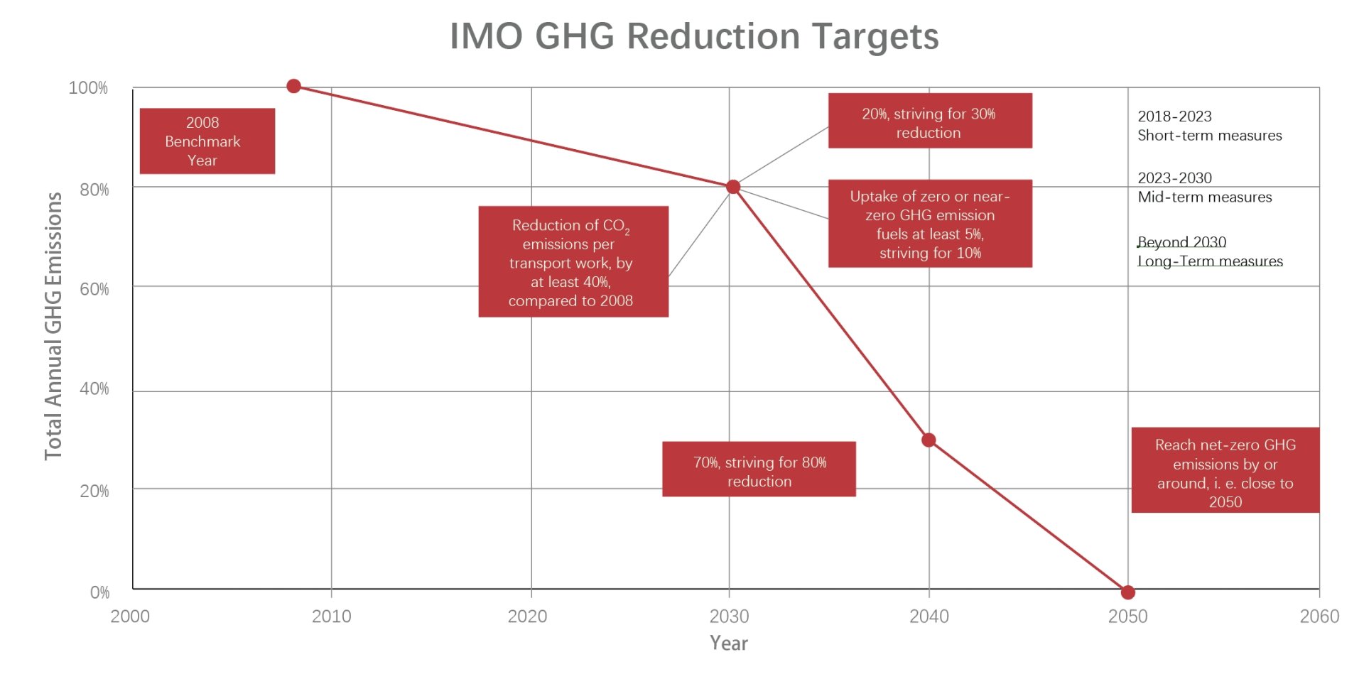 截至2040年,航運溫室氣體減排較2008年標準實現至少70%,爭取實現80%。